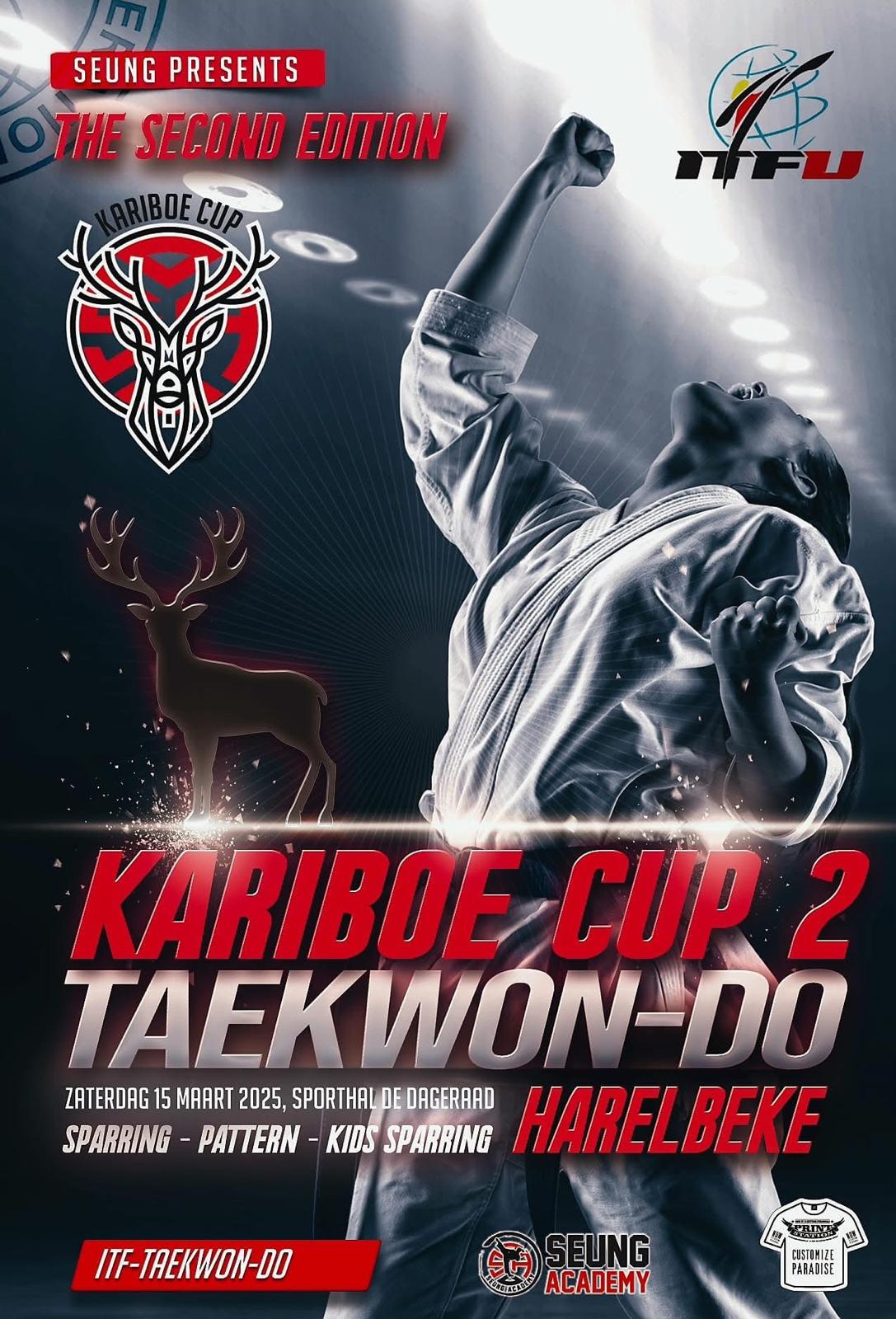 15 maart 2025 was de tweede editie KARIBOE CUP en terug met een groote succes. Met 22 deelnemers hebben we 26 medailles gewonnen: 6 gouden, 13 zilveren en 7 bronzen. De competitie heeft plaats genomen in Herelbeke en werd georganiseerd door onze Master Yves Pollefeyt (7de Dan) en zijn school Seung Academy.